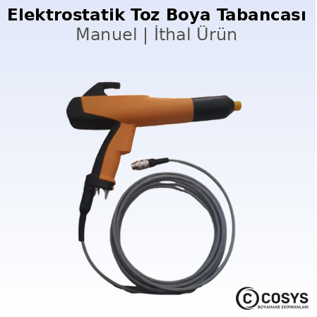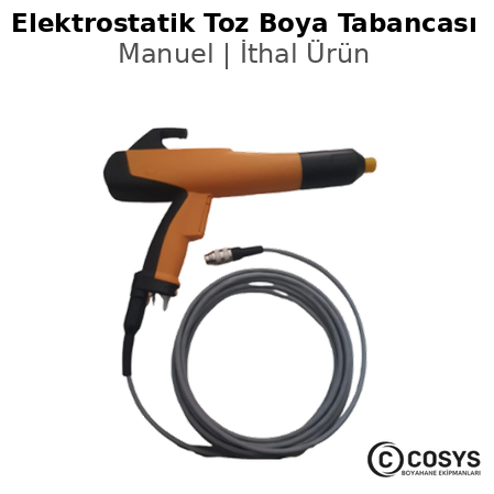 Elektrostatik toz boya cihaz setlerinde kullanılan manuel toz boya tabancasıdır.